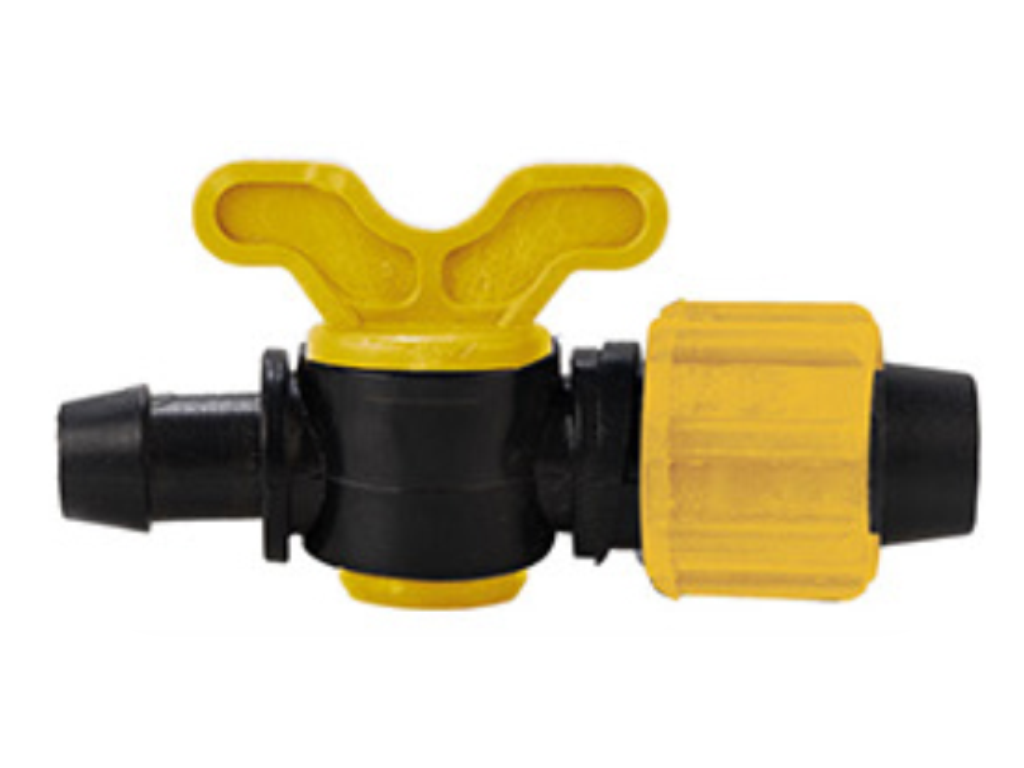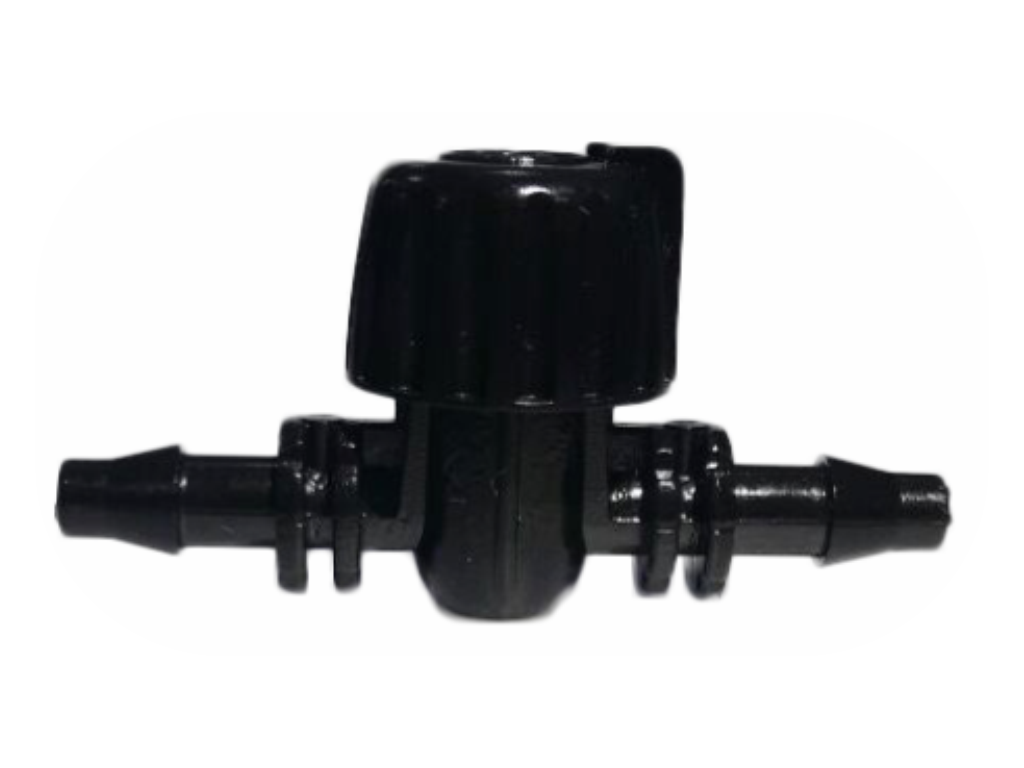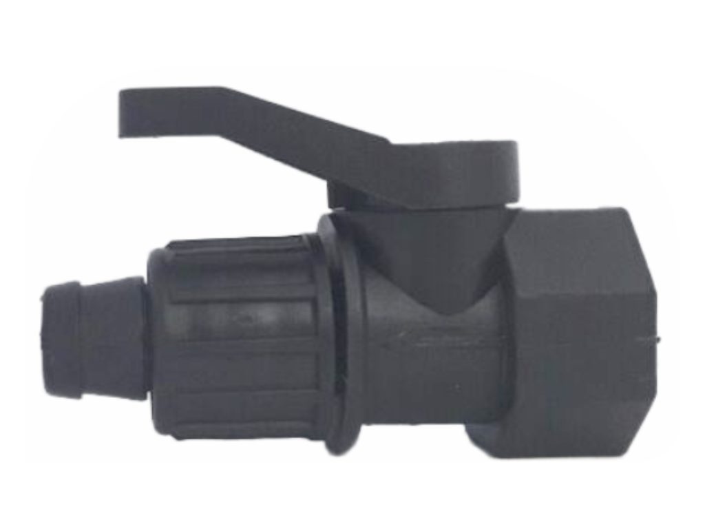 Mini registro esfera para manguera de goteo, con rosca hembra.